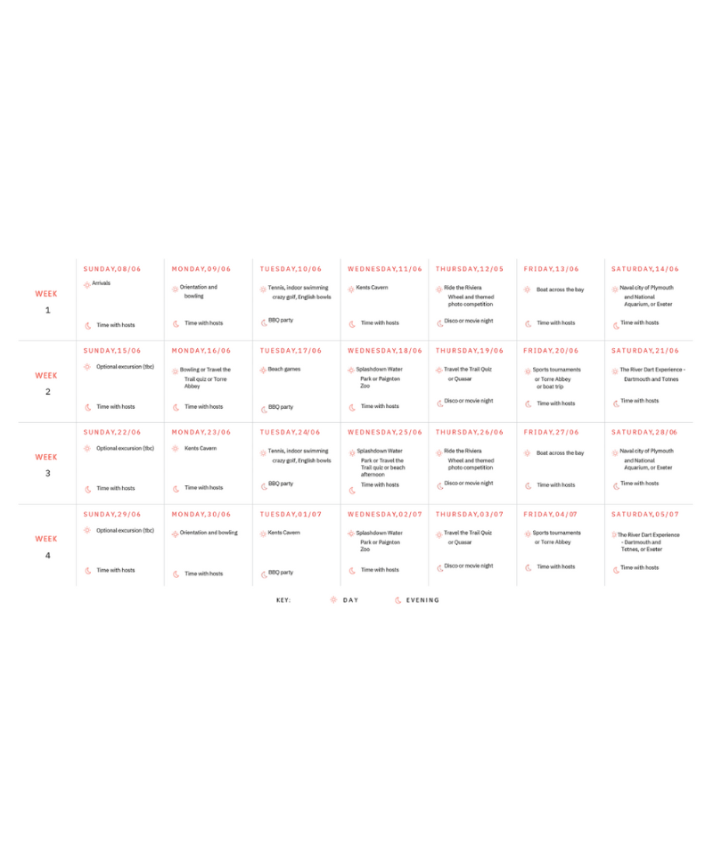 Torquay 是英國最鮮為人知的秘密景點之一,這裡陽光溫暖,沙灘柔軟,海灘兩旁種滿了熱帶棕櫚樹。這裡是讓學生在沉浸在英語之中的同時放鬆身心的完美場所。如果您喜歡冒險,可以去德文郡的海蝕洞進行海岸探險,乘坐English Riviera Wheel 摩天輪觀賞海岸風景,或在叢Jungle Journey Adventure Golf高爾夫活動中廣結世界各地的朋友。