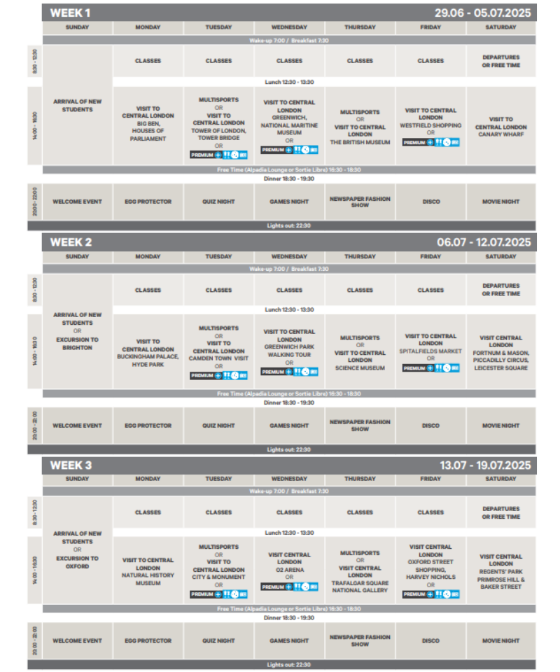 倫敦做為世界上最國際化的城市之一,在音樂、時尚、文化甚至美食方面都處於領先地位。從 Tower Bridge 和 Tate Modern 到白金漢宮及倫敦眼,Alpadia Language School 為前來拜訪倫敦市中心的兒童和青少年舉辦的英語夏令營的宗旨就是希望學生能從旅遊中學習,整個城市就是青少年的活動教室。