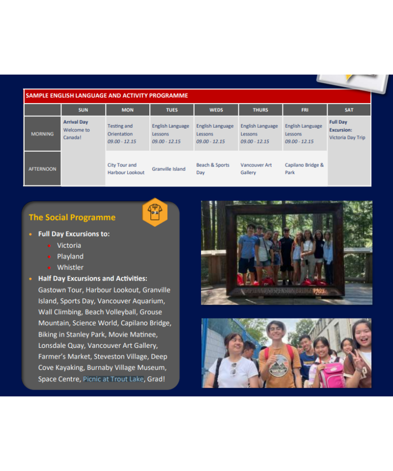 CES 在 Vancouver 的營隊旨在讓學生在認真學習之餘的同時探索被壯闊大自然景色包圍的城市。營隊全程將在 Vancouver 市中心舉行且結合納入課表的探索活動,周圍有熱鬧的地標和綠地供團康活動的進行。目的希望前來參與的青少年學生能在此創造一個難忘的回憶。