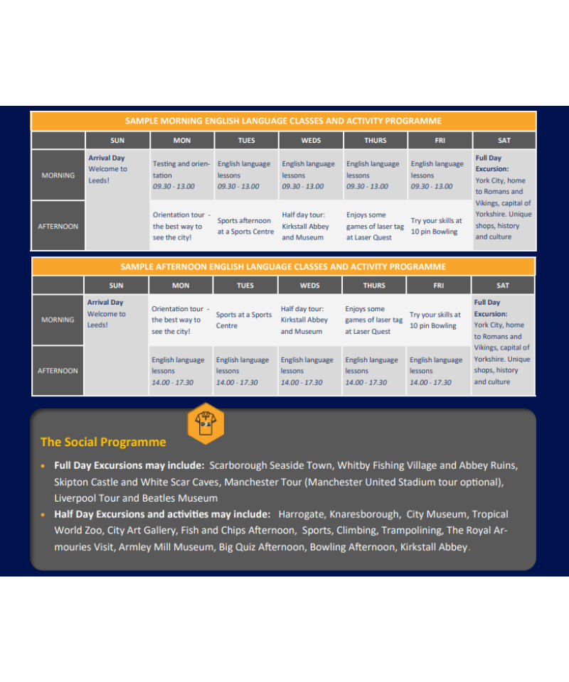 CES 在 Leeds 的營隊位於英國最精緻、最安全的城市。營隊全程將在 Leeds 市中心舉行並結合納入課表的探索活動,並有許多與維京文化相關的探索活動。目的就是希望前來參與的青少年學生能在此創造一個難忘的回憶。