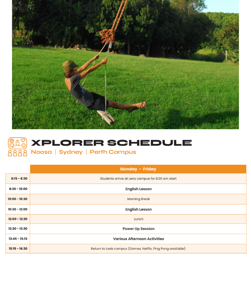 Lexis是領先的兒童語言課程提供者,為年輕學習者提供豐富多元的課程。我們致力於為學生打造全面無憂的學習體驗,涵蓋從頂尖學術課程、精彩的活動安排到舒適的住宿和貼心的福利服務等各方面。您可以選擇在世界聞名的海濱小鎮,如努沙和拜倫灣,陽光明媚的陽光海岸,或雪梨標誌性的海濱郊區曼利學習。如果您想體驗繁華的都市生活,我們在布里斯本和珀斯的校區將為您提供充滿活力的都市體驗。