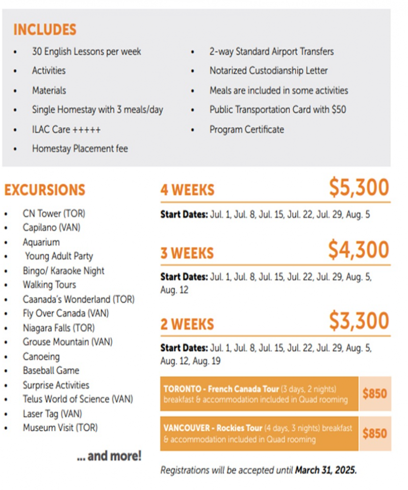 ILAC是全球獲獎最多的英語學校之一,擁有多倫多和溫哥華的校園。每年,因其在英語培訓和客戶服務方面的卓越承諾而受到認可。ILAC歡迎來自75多個國家的學生,使其成為世界上最多元化的英語學校之一。ILAC學校已獲得加拿大教育業界指定的監管學校機構認證。我們獲得行業認可組織的認證有助於保護學生的權利。