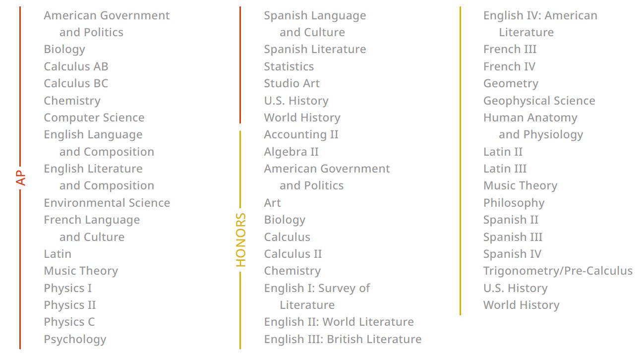 Accounting / Astronomy / Business Marketing / Ceramics / Creative Writing / Digital Production / Forensics / Geophysical Science / Human Anatomy and Physiology / Introduction to Guitar Marine Geology / Modern Legal Issues / Musical Theater / Pathology: The Study of Disease Photography / Sports Marketing / Web Page Design / Women’s Literature / And Many More