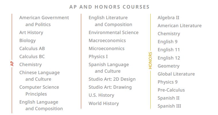 學校為學生提供全面的大學預備課程,旨在培養學生的能力,協助學生順利升入有競爭力的學院和綜合大學。學校開設了「Project Lead the Way」工程學課程,也因此被評為傑出學校。除了高級課程,學校還設有校際運動項目、屢獲殊榮的表演藝術部以及一系列課外活動,藉此培養學生綜合素質的全面發展。。